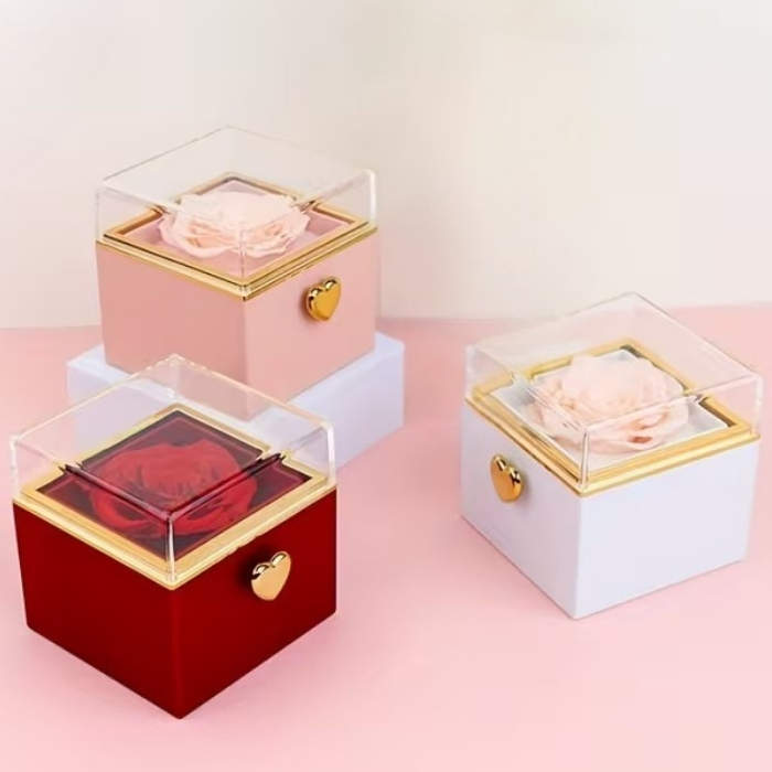 Πολυτελές Κουτί Δώρου με Τριαντάφυλλο και Περιστρεφόμενη Θέση για Κόσμημα