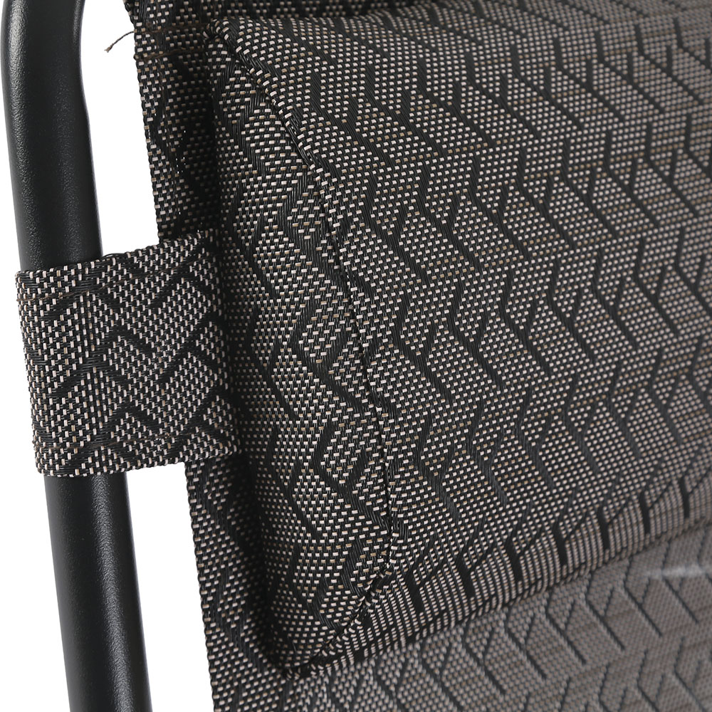 Είναι κατασκευασμένη από ενισχυμένο σκελετό με σωλήνες υψηλής αντοχής 22mm και ύφασμα Dura Mesh και ειδικό σύστημα δεσίματος που χαρίζει ελαστικότητα, επιτρέποντας στην πλάτη να προσαρμόζεται στο σχήμα του σώματος μας προσφέροντας αξεπεραστη άνεση, με ενσωματωμένο ρυθμιζόμενο μαξιλάρι/προσκέφαλο!