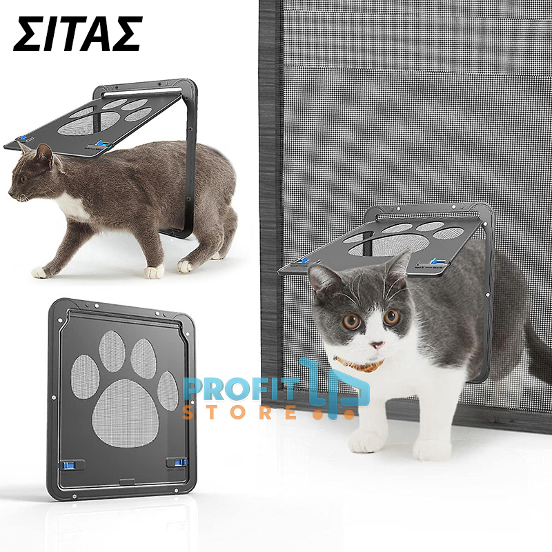 Πορτάκι Γάτας & Μικρών Σκύλων για Σίτα Αντικουνουπική με Κλειδαριά & Μαγνητική Σταθεροποίηση - Αυτόματη Πόρτα Flap Κατοικιδίων