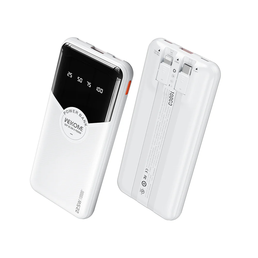 Το power bank της Wekome προσφέρει αξιόπιστη φορητή ενέργεια με χωρητικότητα 20000mAh και σχεδίαση που ενσωματώνει δύο καλώδια γρήγορης φόρτισης, ώστε να μπορείτε να φορτίζετε συσκευές άμεσα και χωρίς περιττά αξεσουάρ.