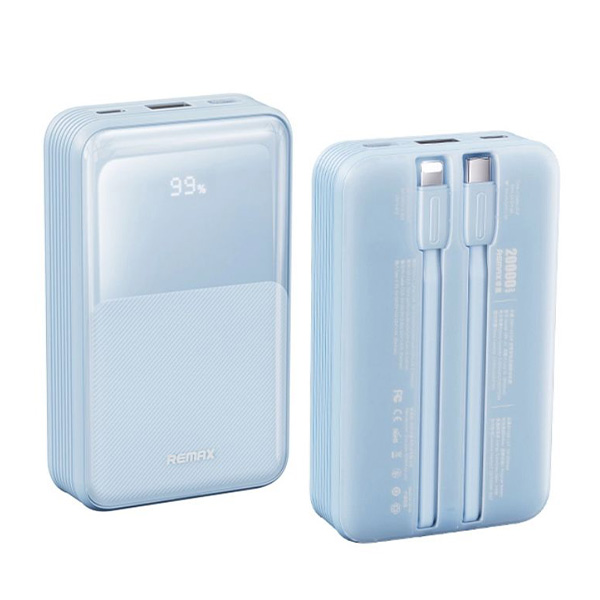 Power Bank 20000mAh PD20W και QC22.5W με Οθόνη και 2 Καλώδια Γρήγορης Φόρτισης σε Μπλε Χρώμα