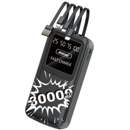 Power Bank 30000mAh με Οθόνη LED, Φακό και Ενσωματωμένα Καλώδια - Andowl