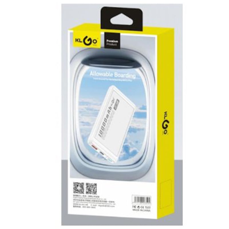 Power Bank KLGO Ταχείας Φόρτισης 10000mAh PD22.5W Type-C - Φορητή Μπαταρία KLGO Portable Fast Charger Άσπρο
