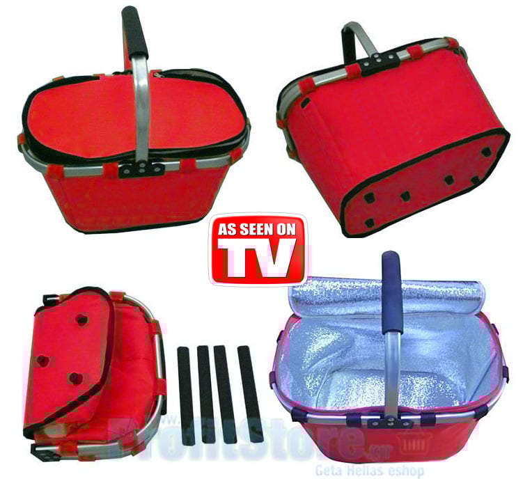 Εξαιρετικά πρακτικό αναδιπλούμενο καλάθι με αλουμινένιο σκελετό, ισοθερμικό, αδιάβροχο και πολύ ανθεκτικό. Κατάλληλο για να μεταφέρετε τρόφιμα, ποτά, αναψυκτικά.