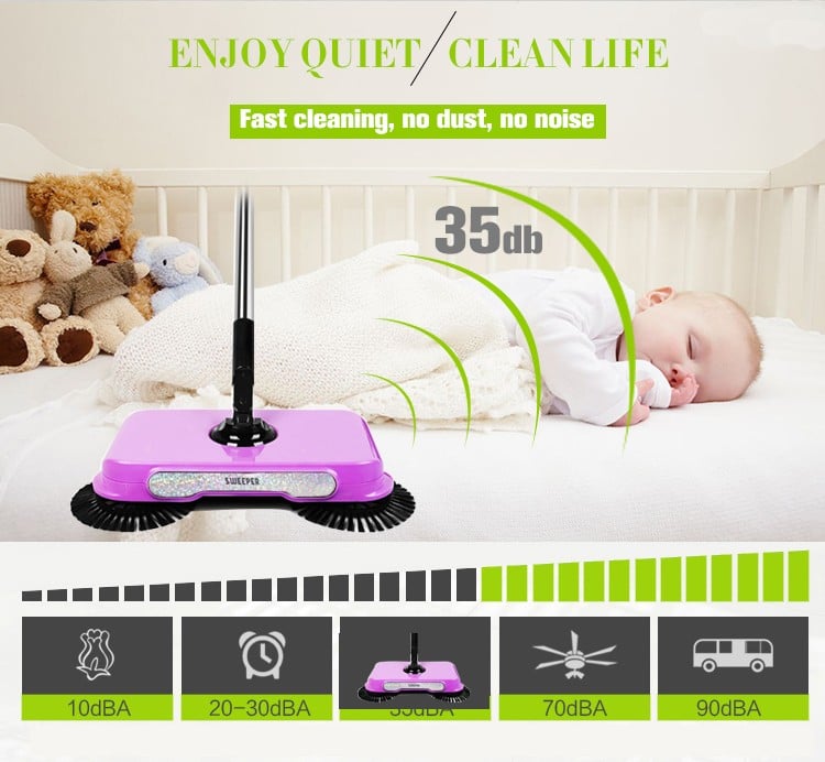 Επίσης είναι σχεδόν αθόρυβη συγκριτικά με τις κοινότυπες ηλεκτρικές σκούπες, καθώς δεν λειτουργεί με ρεύμα! Απλά σύρτε την στο πάτωμα και αφήστε την ίδια να κάνει την δουλειά! Μην ανησυχείτε μήπως ξυπνήσετε την οικογένεια, το παιδί σας. Κάντε τις δουλειές του σπιτιού εν ώρα κοινής ησυχίας.