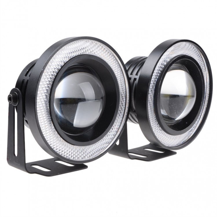 Universal Προβολάκια Fog Ομίχλης Angel Eyes 64mm - Φώτα Ημέρας Αυτοκινήτου LED COB DRL