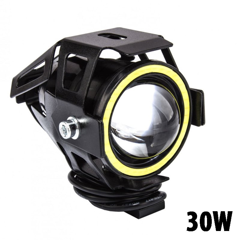 Προβολέας Μοτοσυκλέτας 30W Led Cool White 6500k με Φωτιζόμενη Στεφάνη & Κόκκινο Φως Angel Eye 1 τμχ