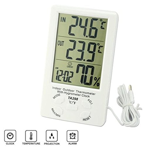 Ψηφιακός μετρητής θερμοκρασίας και υγρασίας με ρολόι, ημερολόγιο και ξυπνητήρι.
