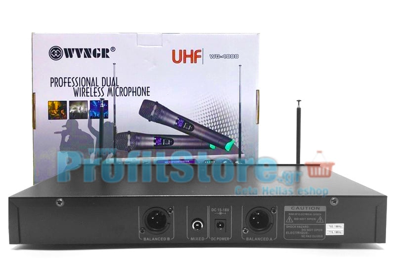 Ψηφιακή Studio Quality Επαγγελματική Συσκευή για Karaoke UHF με Δύο Ασύρματα Μικρόφωνα WG-4000 DIGITAL
