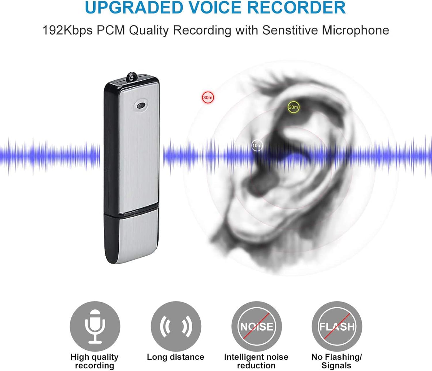 Ψηφιακή Συσκευή Υπαγόρευσης με Ενεργοποίηση Φωνής - USB Flash Voice Recorder 16GB