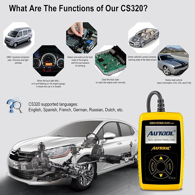 Το νέο AUTOOL CS320 OBD II scanner είναι το απόλυτο εργαλείο για διαγνωστικούς ελέγχους του αυτοκινήτου σας σε πραγματικό χρόνο!