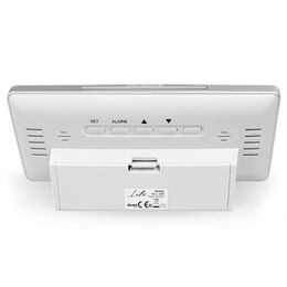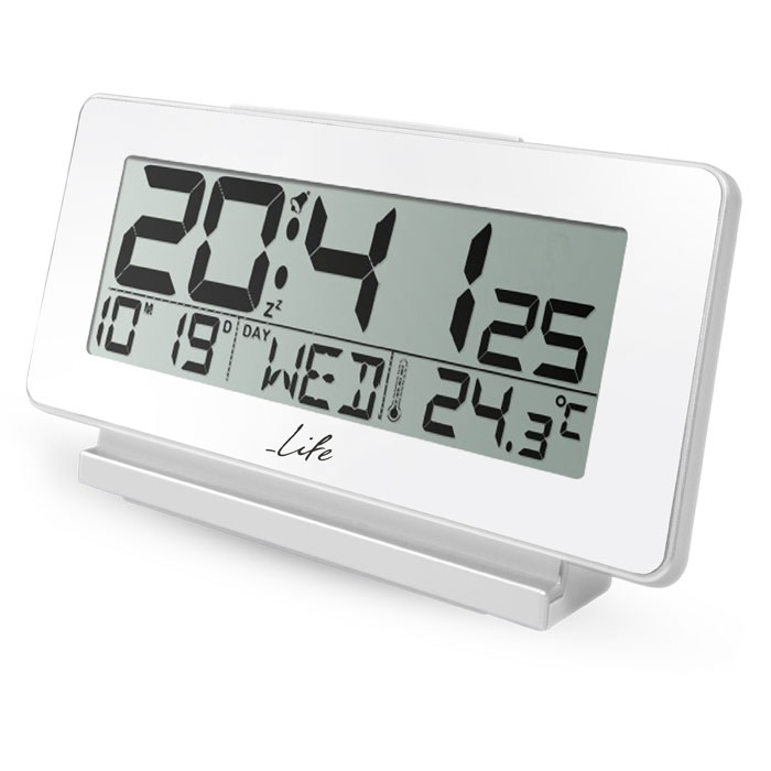 Ψηφιακό ρολόι / ξυπνητήρι με μοντέρνο design, μεγάλη ψηφιακή οθόνη και οπίσθιο LED φωτισμό. Διαθέτει εμφάνιση ημερομηνίας και ημέρας της εβδομάδας καθώς επίσης και θερμοκρασία εσωτερικού χώρου!