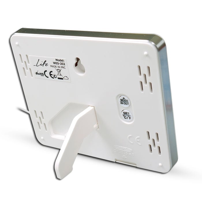 Μετεωρολογικός σταθμός με ενδείξεις θερμοκρασίας εσωτερικού και εξωτερικού χώρου, καθώς και χαμηλότερης/υψηλότερης ημερήσιας καταγραφής.