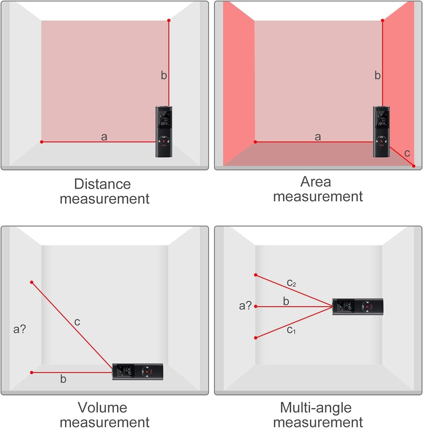 - Λειτουργίες: Μέτρηση απόστασης, συνεχής μέτρηση, μέτρηση ελάχιστης–μέγιστης τιμής, υπολογισμοί επιφάνειας & κατ’ εκτίμηση όγκου