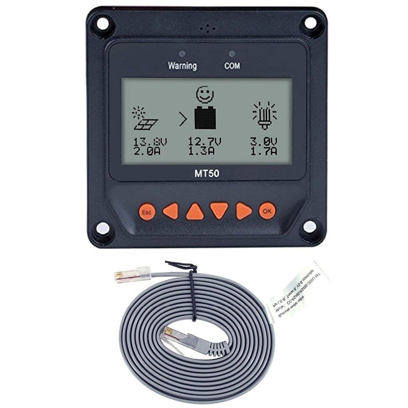 Ψηφιακό Όργανο Παρακολούθησης Ρυθμιστών EPSOLAR, με Ένδειξη Φόρτισης & Κατανάλωσης, Οθόνη LCD, Εύκολο Μενού & 10 Μ Καλώδιο, MT-50