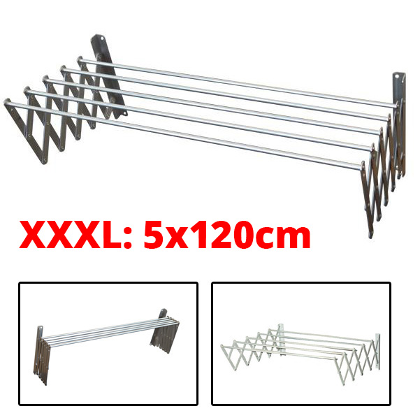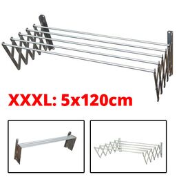 Πτυσσόμενη Απλώστρα Ρούχων για το Τοίχο ή το Μπάνιο 5x120cm από Αλουμίνιο - 5 μέτρων