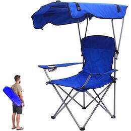 Μεταλλική, πτυσσόμενη καρέκλα, ιδανική για την παραλία, το κάμπινγκ και το ψάρεμα. Είναι άνετη, διαθέτει μπράτσα με θήκη ποτηριού και τέντα για προστασία από τον ήλιο.