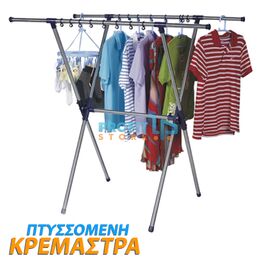 Νέα ενισχυμένη, ανθεκτική μεταλλική κρεμάστρα σιδερωμένων ρούχων με δύο μπάρες πτυσσόμενες από 80cm έως 136cm.