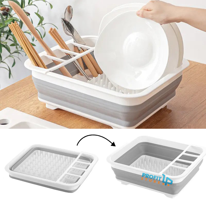 Πτυσσόμενη Πιατοθήκη Κουταλοθήκη - Στεγνωτήριο Στραγγιστήρι Πλυμένων Πιάτων Κουζίνας - Πλαστική με Σιλικόνη