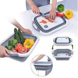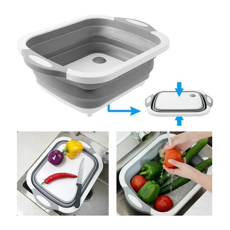 - 1 x Πτυσσόμενη Πολυλειτουργική Σανίδα Κοπής - Καλάθι Πλυσίματος με Λαβές & Τάπα Αποστράγγισης 28.5x38.5x2.7cm