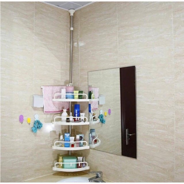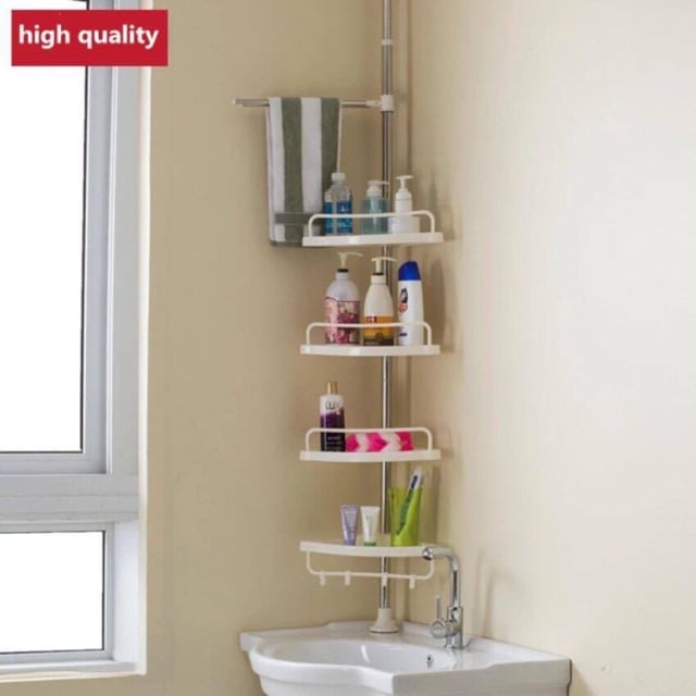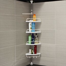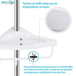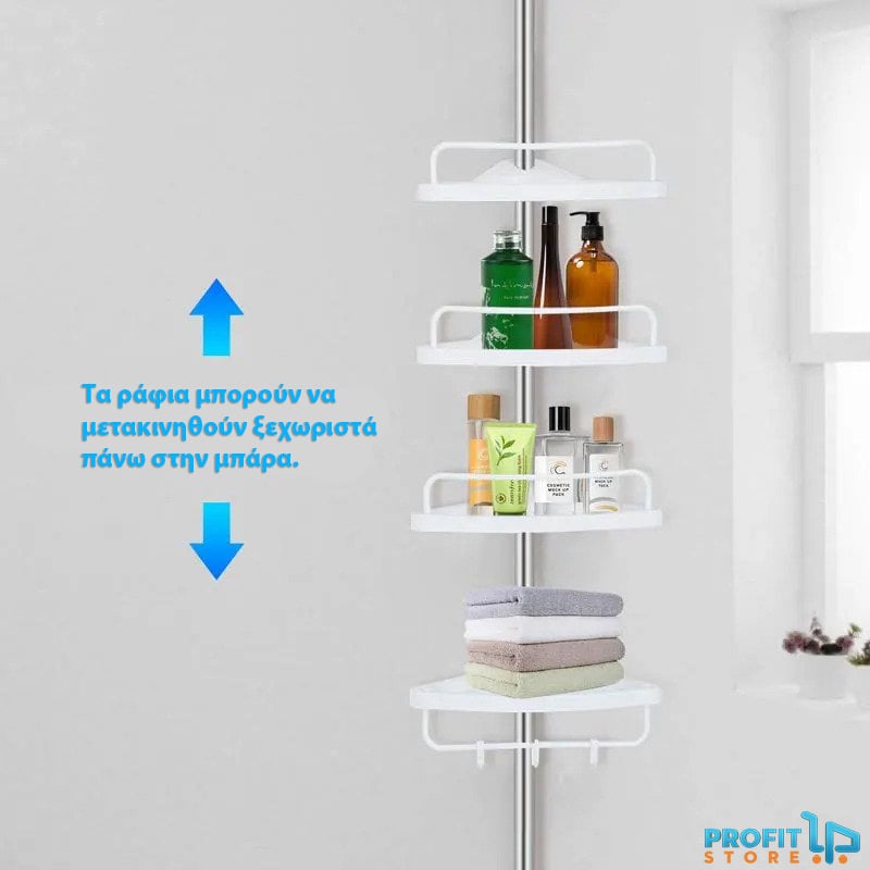 Οργανώστε το μπάνιο σας με την γωνιακή ραφιέρα ντουζιέρας / μπάνιου με 4 ράφια, πετσετοκρεμάστρα & 3 γαντζάκια.