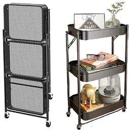 Πτυσσόμενη Τροχήλατη Ραφιέρα - Καρότσι Τριών Επιπέδων με 3 Ράφια και Ροδάκια Τρόλεϊ Οργάνωσης Διακόσμησης 45x30x77 cm Μαύρο