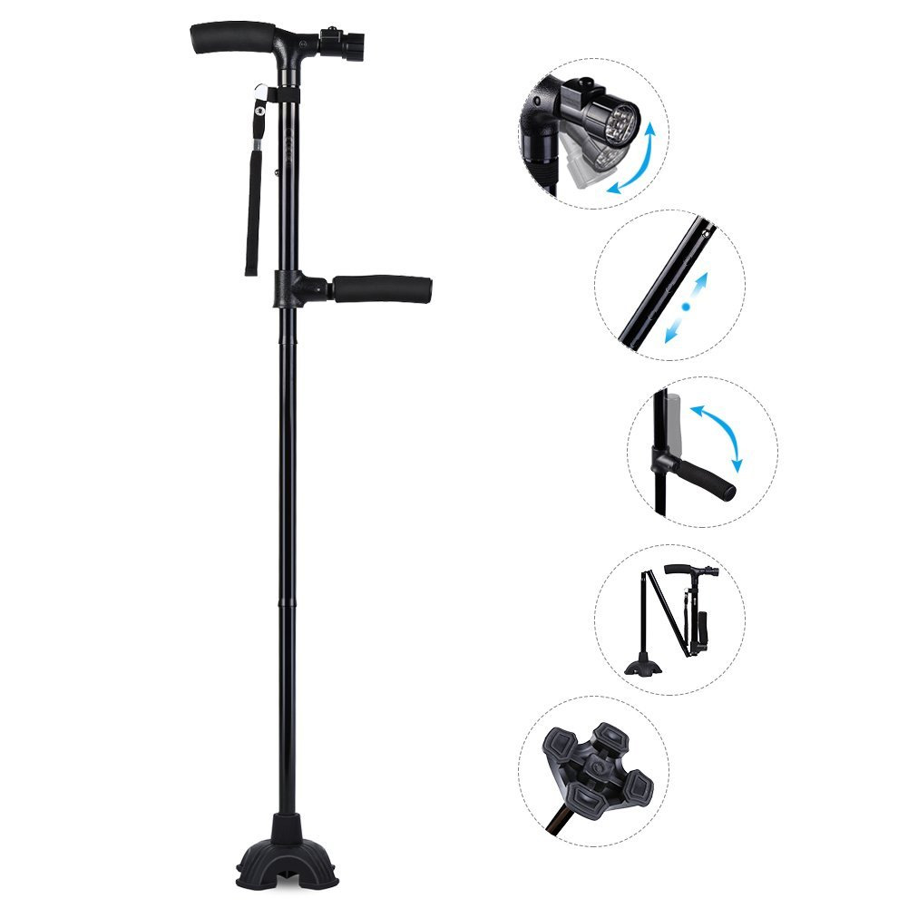 Πτυσσόμενο Μπαστούνι με Δύο Λαβές, Εργονομική , Αντικραδασμική Βάση & Φακό LED
