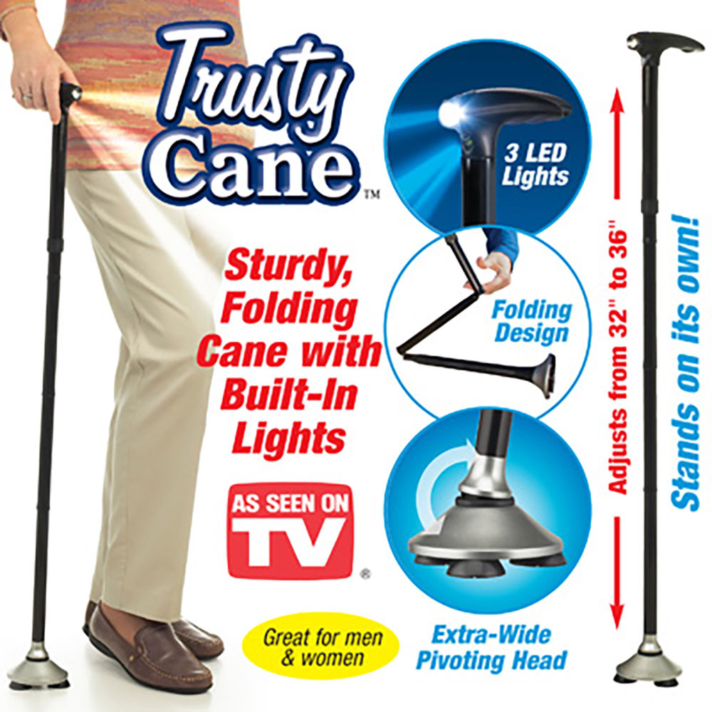 Πτυσσόμενο Μπαστούνι με Περιστρεφόμενο Πέλμα, Φακό LED & Ρύθμιση Ύψους - Trusty Cane