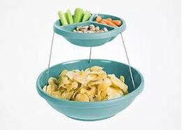 Πτυσσόμενο μπολ 2 επιπέδων ιδανικό για πάρτυ! Σας προσφέρει εξοικονόμηση χώρου εφόσον τα δύο μπολ μαζεύουν και απλώνουν με μία μόνο συστροφή. Τα μπολ διαθέτουν κρυφούς μαγνήτες ώστε να μένουν ενωμένα όταν μαζεύουν. Το μικρότερο μπολ διαθέτει 3 θήκες, κατάλληλες για μικρά σνακ όπως ξηροί καρποί!