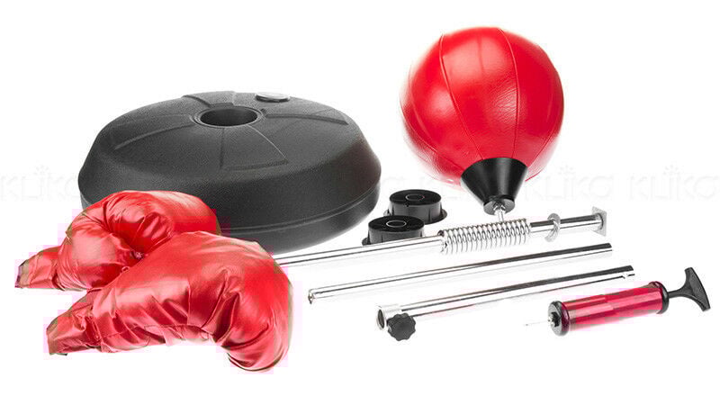 Το σετ περιλαμβάνει γάντια , Σάκο/μπάλα που φουσκώνει με την τρόμπα χειρός που περιλαμβάνεται στο σετ αλλά και μία πολύ εύκολα συναρμολογούμενη βάση ώστε να μην χρειάζεται άλλη επέμβαση στο χώρο.