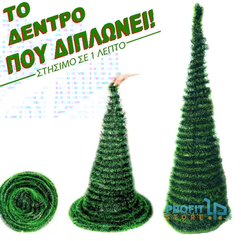Πτυσσόμενο Χριστουγεννιάτικο Δέντρο 1,5m που Στήνεται σε 1 Λεπτό & Διπλώνει - Κωνικό - Γρήγορη Συναρμολόγηση