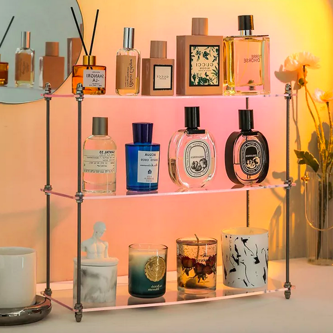 Minimal Μικρή Ραφιέρα Μπάνιου 3 Επιπέδων Ακρυλλική με Μεταλλικό Σκελετό