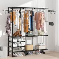 Ανθεκτικό και μοντέρνο έπιπλο εισόδου με κρεμάστρες και ράφια 160x33x173 cm, ιδανικό για ρούχα, παπούτσια και αξεσουάρ. Με μεταλλικό σκελετό, αδιάβροχα ράφια και minimal σχεδιασμό, οργανώνει τέλεια κάθε χώρο του σπιτιού.