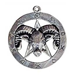 Ο κερασφόρος θεός εμφανίζεται ως Κριός στην Εαρινή Ισημερία με την ενέργεια και την αισιοδοξία της άνοιξης. Ο Ραμ, παγανιστικό σύμβολο του ανδρισμού, συνδυάζεται με τη πεντάλφα για να επικοινωνήσει με τη δύναμη της ζωής.Μέγεθος: 39 x 25mm