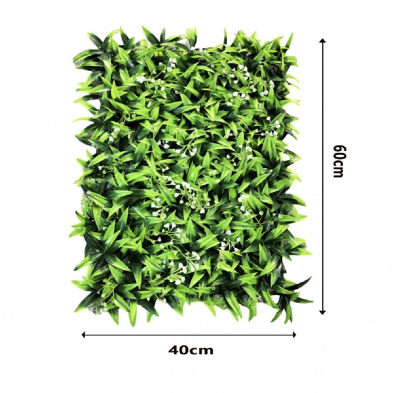 Ανανεώστε τη διακόσμηση του χώρου σας με την τεχνητή φυλλωσιά με λευκα λουλούδια 60x40cm, ένα υψηλής ποιότητας διακοσμητικό πάνελ που προσφέρει ρεαλιστική όψη πράσινου φυλλώματος.