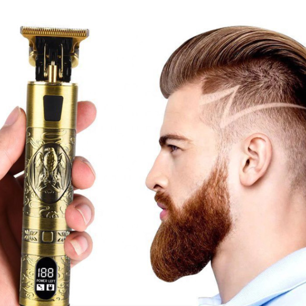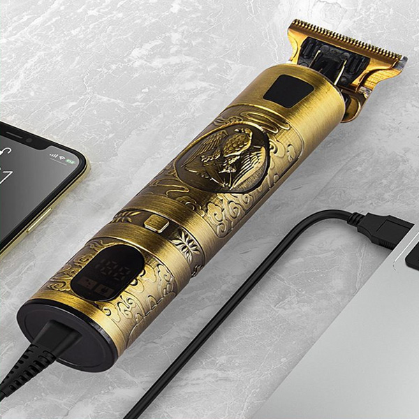 Ρετρό Επαναφορτιζόμενη Κουρευτική Μηχανή 5W με LCD Οθόνη για Ένδειξη Μπαταρίας, Ρυθμιζόμενου Μήκους Κοπής - Χρυσή με Ανάγλυφο Αετό