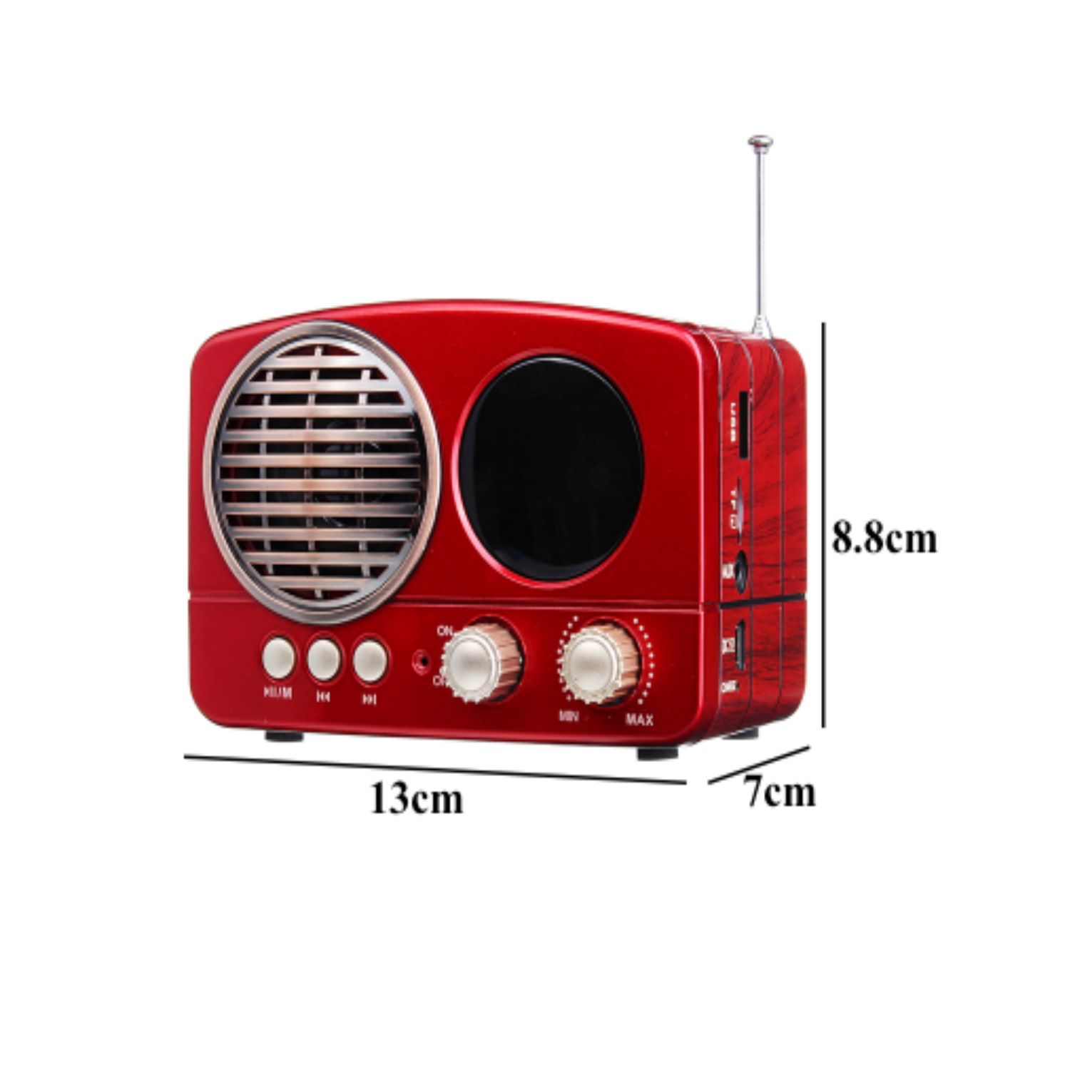 Το συγκεκριμένο ρετρό ραδιόφωνο USB MP3 λειτουργεί είτε με επαναφορτιζόμενη μπαταρία η οποία φορτίζει με το καλώδιο που περιλαμβάνεται.