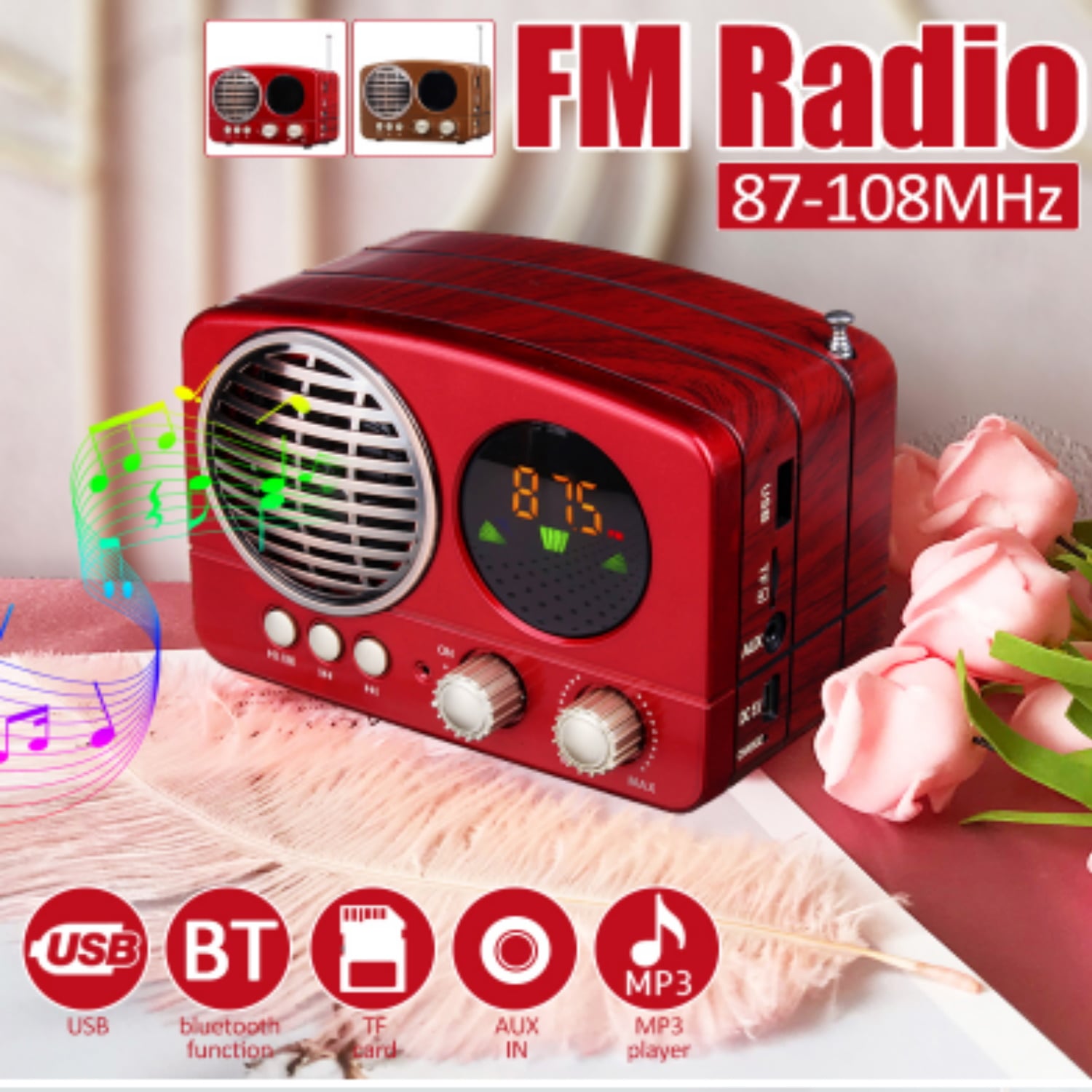 Retro Φορητό Επαναφορτιζόμενο Ραδιόφωνο Bluetooth USB SD Mp3 Player Meier Κόκκινο