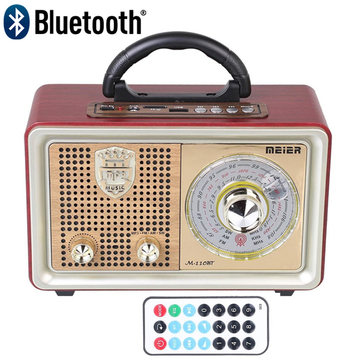 Meier® τηλεχειριζόμενο ασύρματο Bluetooth Multimedia ηχείο Mp3 player και παράλληλα ρετρό κλασσικό ραδιόφωνο που ενσωματώνει θύρες για USB, SD και AUX Input.