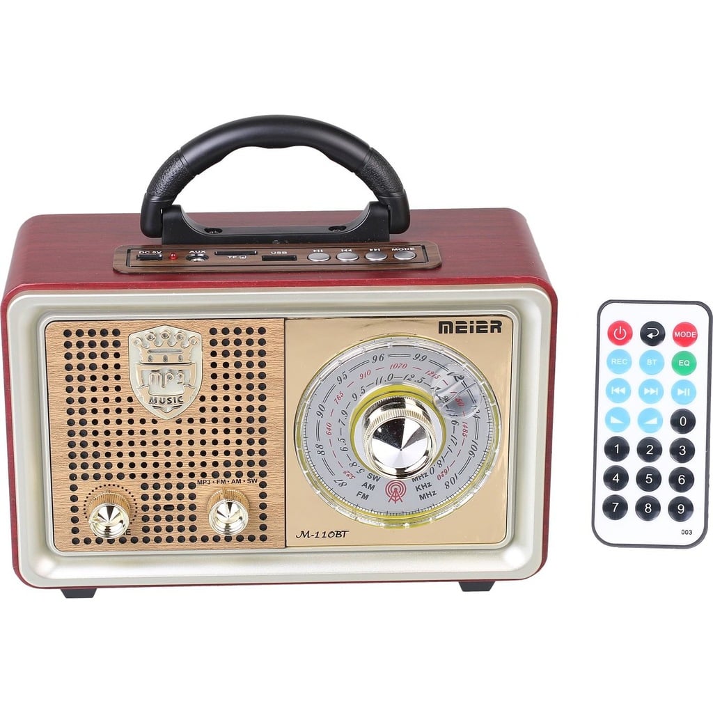 Retro Φορητό Επαναφορτιζόμενο Ραδιόφωνο Meier® - Multimedia Ηχείο MP3 Player με Bluetooth, USB, SD, AUX, FM Radio & Τηλεχειριστήριο