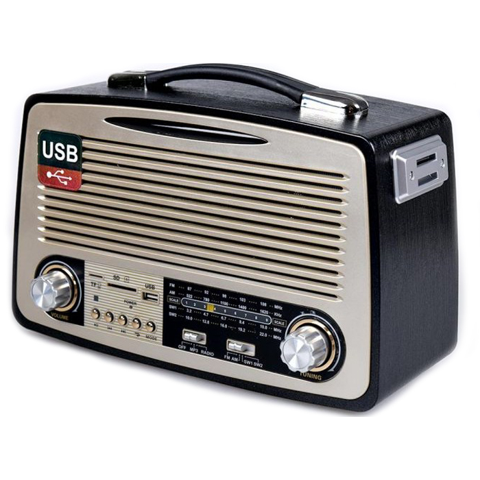 Retro Φορητό Επαναφορτιζόμενο Ραδιόφωνο USB,SD Mp3 Player Kemai Μαύρο