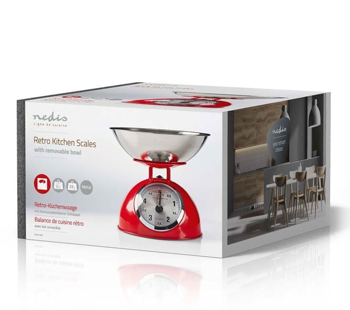 Ρετρό Ζυγαριά Κουζίνας με Μπολ από Ανοξείδωτο Ατσάλι NEDIS KASC110RD