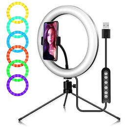 RGB Φωτογραφικό Φωτιστικό Δαχτυλίδι LED 26cm Πολύχρωμο USB με Τρίποδο & Βάση Στήριξης Κινητού - Ring Light Lamp OEM