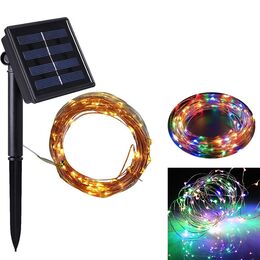 RGB Ηλιακά Χριστουγεννιάτικα Λαμπάκια σε Σύρμα 12m - Πολύχρωμα Φωτάκια LED Εξωτερικού Χώρου (100 λαμπάκια) με Φωτοβολταϊκό Πάνελ