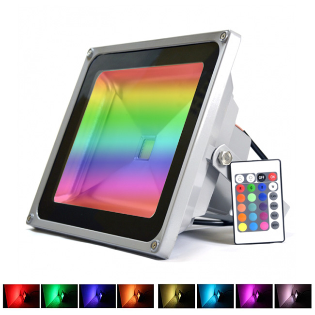 RGB Προβολέας 10Watt, για εξοικονόμηση ενέργειας και ατμοσφαιρικό φωτισμό μαζί με ασύρματο τηλεχειριστήριο για αυτόματη εναλλαγή άπειρων αποχρώσεων.