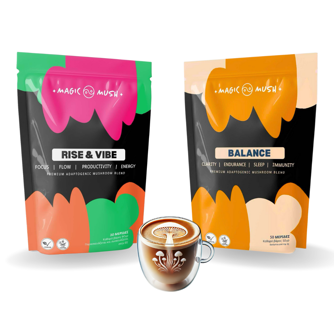 Αποκτήστε το Rise & Vibe και το Balance σε ειδική προσφορά και απολαύστε τα οφέλη των λειτουργικών μανιταριών και των προσαρμογόνων βοτάνων, για ενέργεια, ισορροπία και αποτοξίνωση!