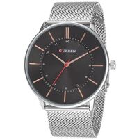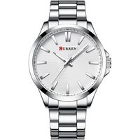 Ανδρικό αδιάβροχο ρολόι Curren με ασημί μπρασελέ από ανοξείδωτο ατσάλι, μεταλλική κάσα και λευκό καντράν με ασημί λεπτομέρειες.