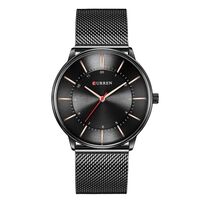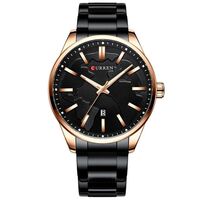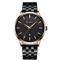Ανδρικό αδιάβροχο ρολόι Curren με μαύρο μπρασελέ από ανοξείδωτο ατσάλι, μεταλλική ροζ-χρυσή κάσα και μαύρο καντράν με ροζ-χρυσές λεπτομέρειες.