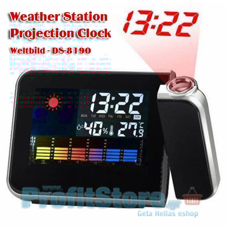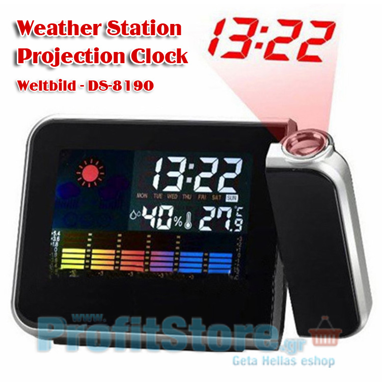 Ρολόι Προτζέκτορας - Μετεωρολογικός Σταθμός με Έγχρωμη Οθόνη WeltBild DS-8190