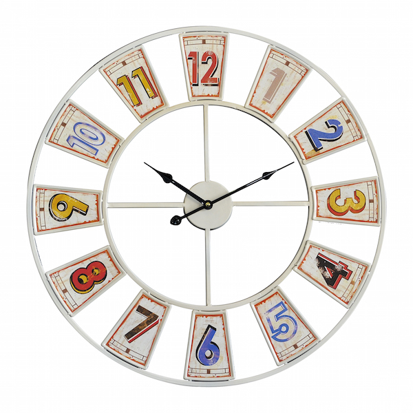 Εντυπωσιακό μεταλλικό ρολόι τοίχου λευκό, διαμέτρου 60cm.